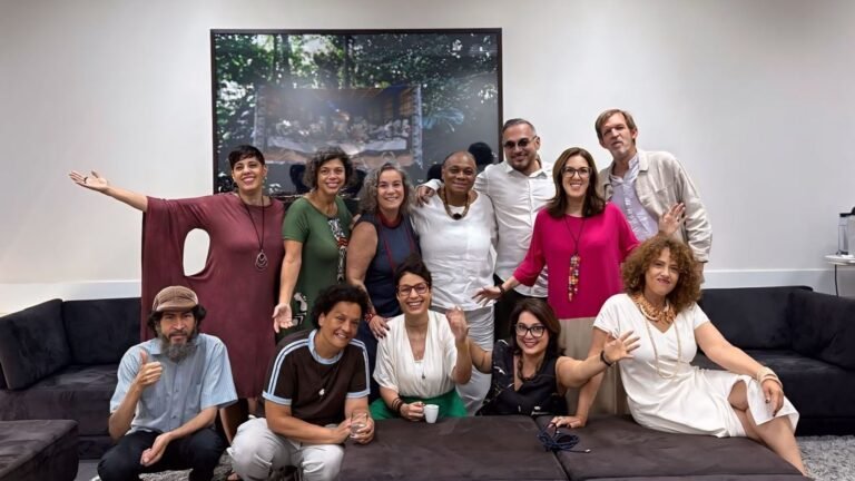 Quando chegou a hora do “Momento Coletiva”, senti algo especial. Estávamos ali: Ana Lucia Bastos, Bruna Elage, Isildinha Baptista Nogueira, Lilian Carbone, Luciana Chauí, Maria Vera Lucia Barbosa, Patricia Villas-Bôas, Roberta Kehdy e eu. Cada um com sua trajetória, seu corpo de história, sua maneira de praticar escuta. O inconsciente, dissemos, não mora apenas nos consultórios da Vila Nova Conceição ou nos de Higienópolis. Mora também nas favelas, nos quilombos, nas periferias, nos corpos que aprenderam a sobreviver. Houve riso, houve silêncio, houve aquele tipo de palavra que só aparece quando se está entre pessoas que confiam umas nas outras. E houve também corpo. Nós dançamos, fizemos ciranda, nos deixamos levar pelo ritmo. Cantamos junto com Lu Chauí e com o cientista social Pedro Javier Aguerre Hugues, que nos brindaram com canções delicadas. Voz, violão e um calor que parecia costurar tudo o que estávamos vivendo.